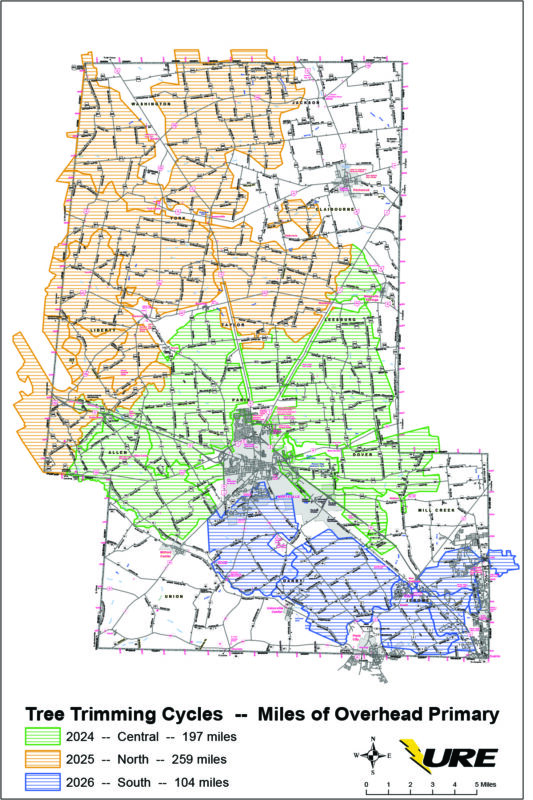To help alleviate these scenarios, the cooperative has implemented a comprehensive tree trimming, or right-of-way program. When possible, branches and limbs are just cut back from the lines.